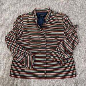 Talbots Retro Striped Metallic Thread Mandarin Collar Jacket – Size 8