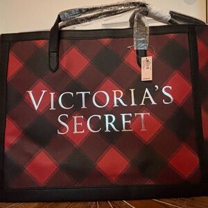 NWT Victoria's Secret Red and Black Checkered Tote Bag