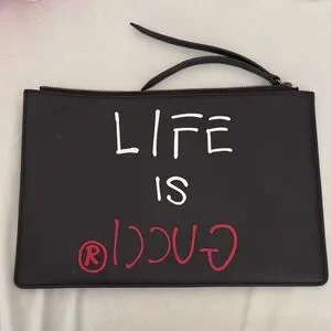 Gucci Black Clutch with Red and White Lettering
