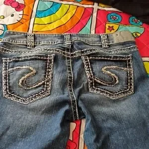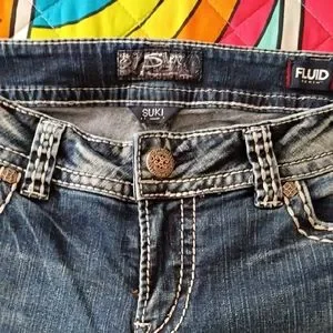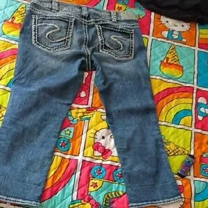 Chic blue cropped jeans with unique back pocket design. Perfect for casual wear.