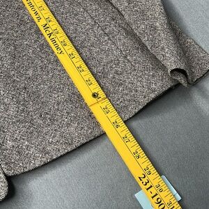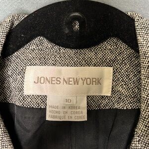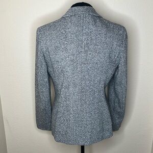 Classic blazer with a textured black and cream. pattern, tweed. Tailored back seams for a more slimming, flattering silhouette. Three button-up front. In seam pockets on sides, see picture. Fully lined inside. No rips, tears, or stains. Like new condition.