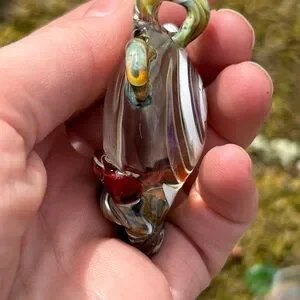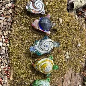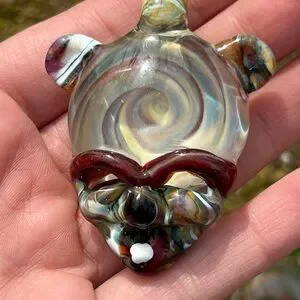 These awesome hand blown glass dead bear pendants feature a stunning infinity swirl of multicolor hues.