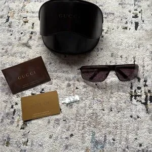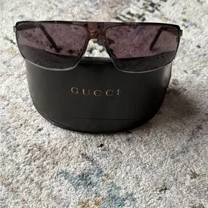 Rare vintage Y2K gucci aviator sunglasses, unisex black and silver rectangular frames. A mirror like lense, and the vintage gucci logo on the sides. These match with everything, but such an amazing piece for a vintage collection!
