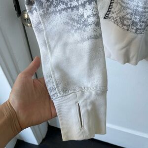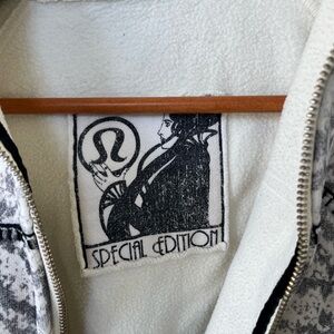 Rare vintage Lululemon scuba hoodie special edition. Ivory with black/grey snowflake pattern. Gently used condition, still a lot of wear left! Thumb holes and zipper protector. No stains or tears. Fleece has been washed down a bit in the hoodie and isn’t as fluffy as brand new. Size 6