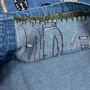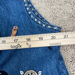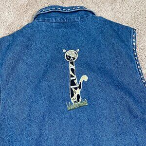 Life Style Vest Woman XL Denim Cat Lady Embroidered Appliqué Wacky Fun Funky Art