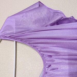 Soft lilac nylon fabric. Comfortable and stylish. Measuring 20" across the shoulders and 28" pit to pit with a back length of 35"