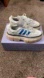 Sleek sneakers with a white exterior and blue interior. Ideal for everyday style. Size 10. May run big, but when I wore them they fit true to size. Wore once. Shoe box & duster bag are included.