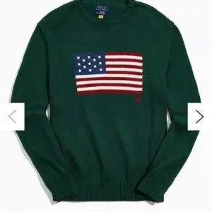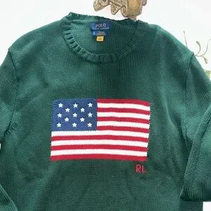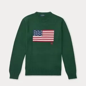 POLO Ralph Lauren ICONIC AMERICAN FLAG Knit CrewNeck Long Sleeve Sweater