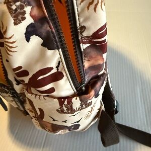 Has bison and cactus theme all over print. Multiple pockets with padded pocket for a small laptop or iPad.