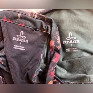 Keywords: prAna leggings set, batik print activewear, prAna yoga outfit, recycled fabric leggings, sustainable activewear, 7/8 leggings, prAna bra top, boho athleisure set