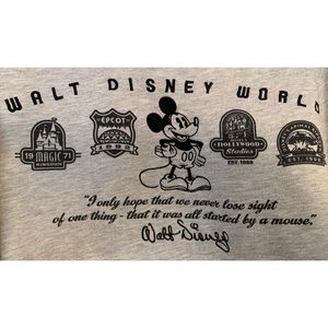 Cozy gray sweatshirt featuring Walt Disney World design. Mickey Mouse graphic in center. Perfect for casual wear.