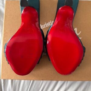 Christian Louboutin Nicol is back green satin heels