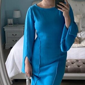 Embrace elegance with this chic turquoise long sleeve dress. Perfect for any occasion, it offers a stylish and sophisticated look.