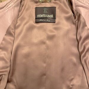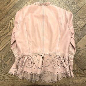 Roberto Cavalli Vintage Pink Laser Cut Leather Jacket - size 40 IT. Fit well when I was a US size 2-4. Soft leather and satin lining. Great condition - no stains or tears.