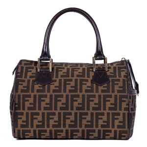 Fendi Travel Bag Boston in Brown Zucca Canvas and Gold hardware. The product is in Very Good Condition (AB).