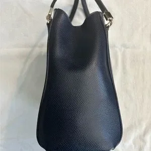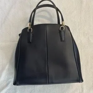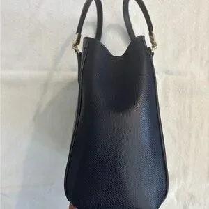 Coach leather handbag in color navy. Comes with crossbody strap and dust bag. Measures 10” x 5.25” x 9.5”. In excellent condition.