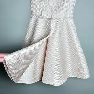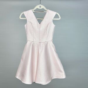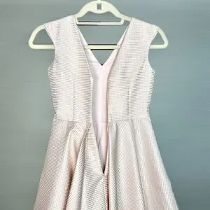 Elegant light pink dress with a gorgeous metallic sheen and textured fabric. Sleeveless with a V-neck and pockets. Perfect for formal occasions. NWOT condition