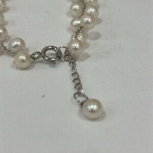 This elegant and modern white freshwater pearl necklace is on a sterling silver chain. The design is absolutely gorgeous and is a stunning addition to any outfit. Perfect for any occasion.