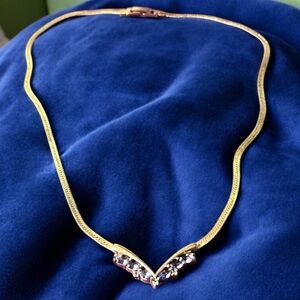 Vintage Gold Tone and Purple Rhinestone Gemstone V Herringbone Chain Necklace