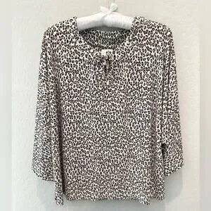 CHICO’S | Petite Leopard Print Grommet Lace-Up Knit Top!