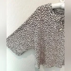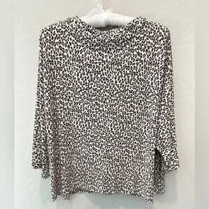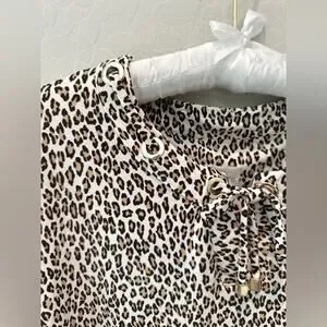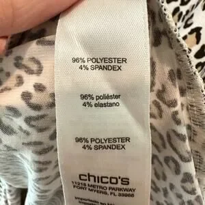 Tags Chico’s leopard print top, petite animal print shirt, lace-up neckline blouse, Chico’s petite top, gold grommet top, stretch knit top, statement animal print, 3/4 sleeve blouse, dressy casual shirt, travel friendly top