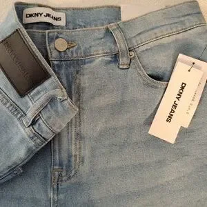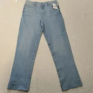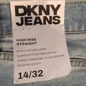 DKNY High-Rise Classic Straight-Leg Raw-Hem Jeans. Size 14/32