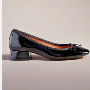 ANTHROPOLOGIE Bibi Lou Heeled Ballet Bow Pumps in Black Patent Leather Sz 41 - NIB!!