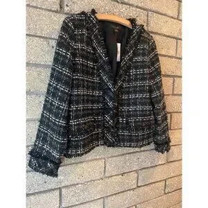 Ann Taylor Womens Black & White Tweed Fringed Button-Front Blazer Size 8 NWT