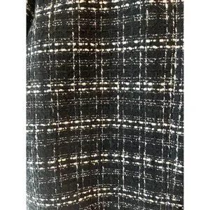 This tweed jacket tells a tale of classic style and sophistication. With its intricate black and white pattern, delicate fringe details, and elegant button-front design, it’s a wardrobe essential. Perfectly tailored for versatility, it transforms any outfit into a statement of grace and poise.