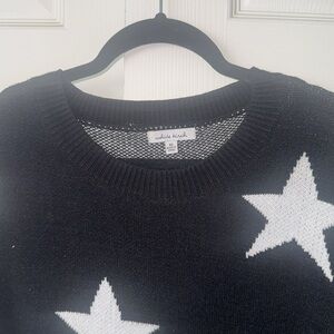 Stylish black sweater featuring a bold white star pattern. Perfect for casual wear.