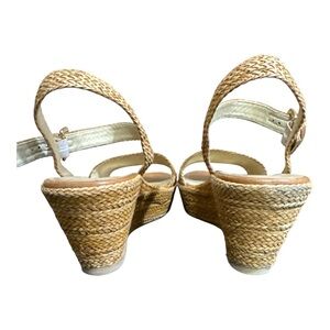 Women’s NWOT Stuart Weitzman Barbados Tan Woven Wicker Chunky Wedge Sandals