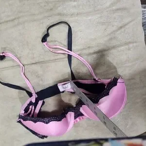 Y2K Jezebel Bright Pink Satin And Black Lace Bra Size 34C And Skirt Size S Set