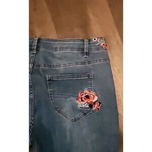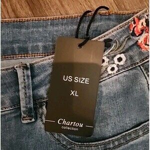 Charton Collection Jeans Womens Flare XL Med Wash Embroidered Flowers Wide-Leg