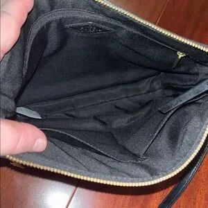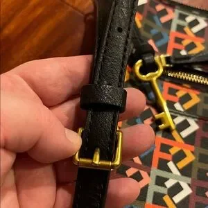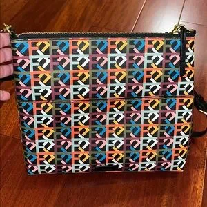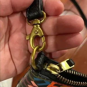 This PVC crossbody boasts 2 slide pockets, 1 zipper pocket and an adjustable, detachable crossbody strap.