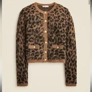 JCrew Brushed sweater lady jacket in leopard print Size Small