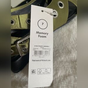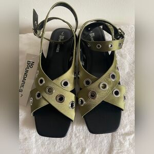 Chic olive green sandals featuring stylish grommet details. Ideal for everyday wear.