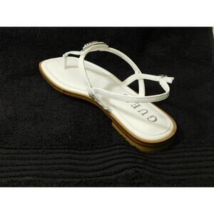 W609 Guess White Faux Leather Rainey T-Strap Sandals - Size 6.5 M