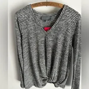 Sunday in Brooklyn Womens Twist Hem Top M Medium Black White Stripe Long…