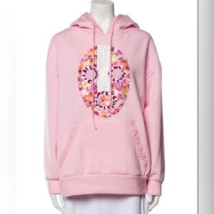 NWT NEUBYRNE luxury brand women’s cozy lounge Sweatshirt in Light pink Graphic with beading and sequin accents⭐️ “Maccado Mask”⭐️Size S
