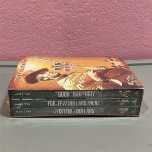 Classic Clint Eastwood western trilogy. Iconic films in one collection. Perfect for movie enthusiasts.