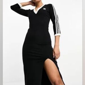 Adidas Adicolor Classics Maxi Dress black white stripes NWT.