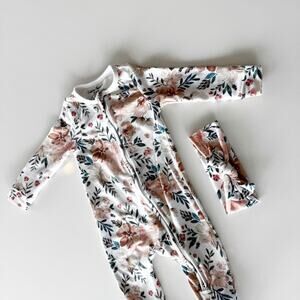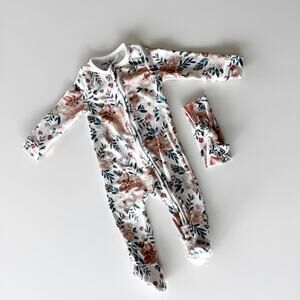 Copper Pearl Autumn Print 2-Way Zip-Up Footie and Headband Bow