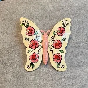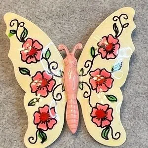 Enhance your style with this charming floral butterfly brooch. The pink and cream colors add a delightful touch to any ensemble. Call out is small fleabite on backside see pictures.