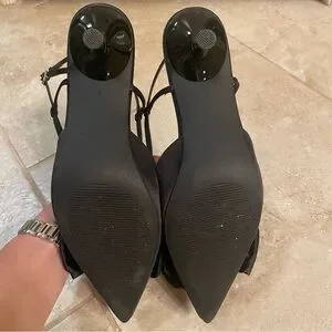 Chic black heels with a stylish satan bow. Perfect for any occasion. A classic look.