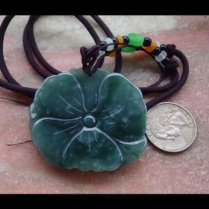 Beautiful green jade flower pendant. Intricate carving with a glossy finish.