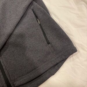 Versatile and warm jacket. Features a sleek design with a zippered chest pocket. Ideal for outdoor activities. Like new