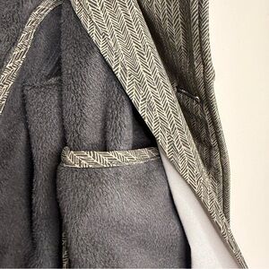 Fleece lined, side pockets, button up closure, button sleeve hem (one button missing - extra button inside jacket)