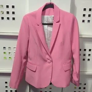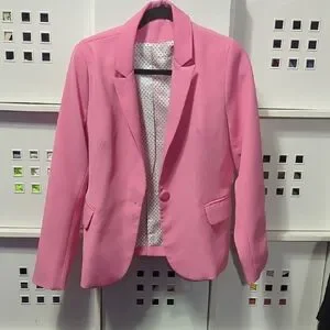Elevate your style with this classic pink blazer. Perfect for formal occasions or adding a pop of color to your wardrobe.