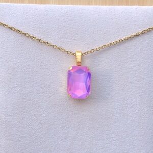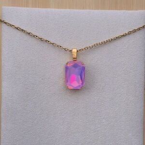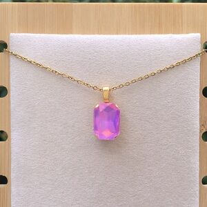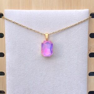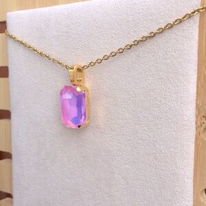 Pink-Purple Opal Aurora Borealis + Gold Emerald Cut Crystal Pendant Necklace