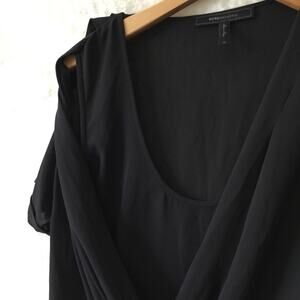 BCBGMaxAzria Black Drape Front Hi-Low Sheer Top